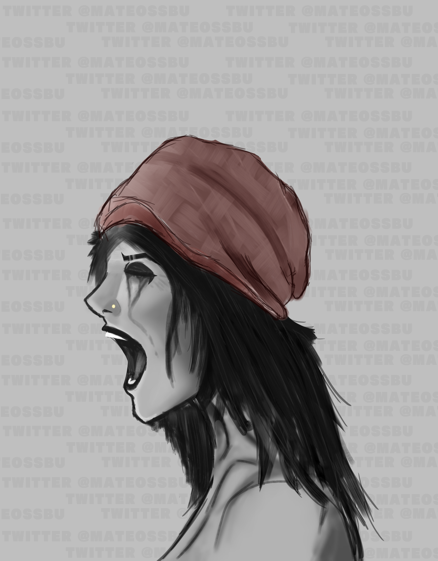 A personal project, made to study dramatic facial expressions. It's mostly grayscale with some hints of slightly de-saturated color around the clothing and jewelry.