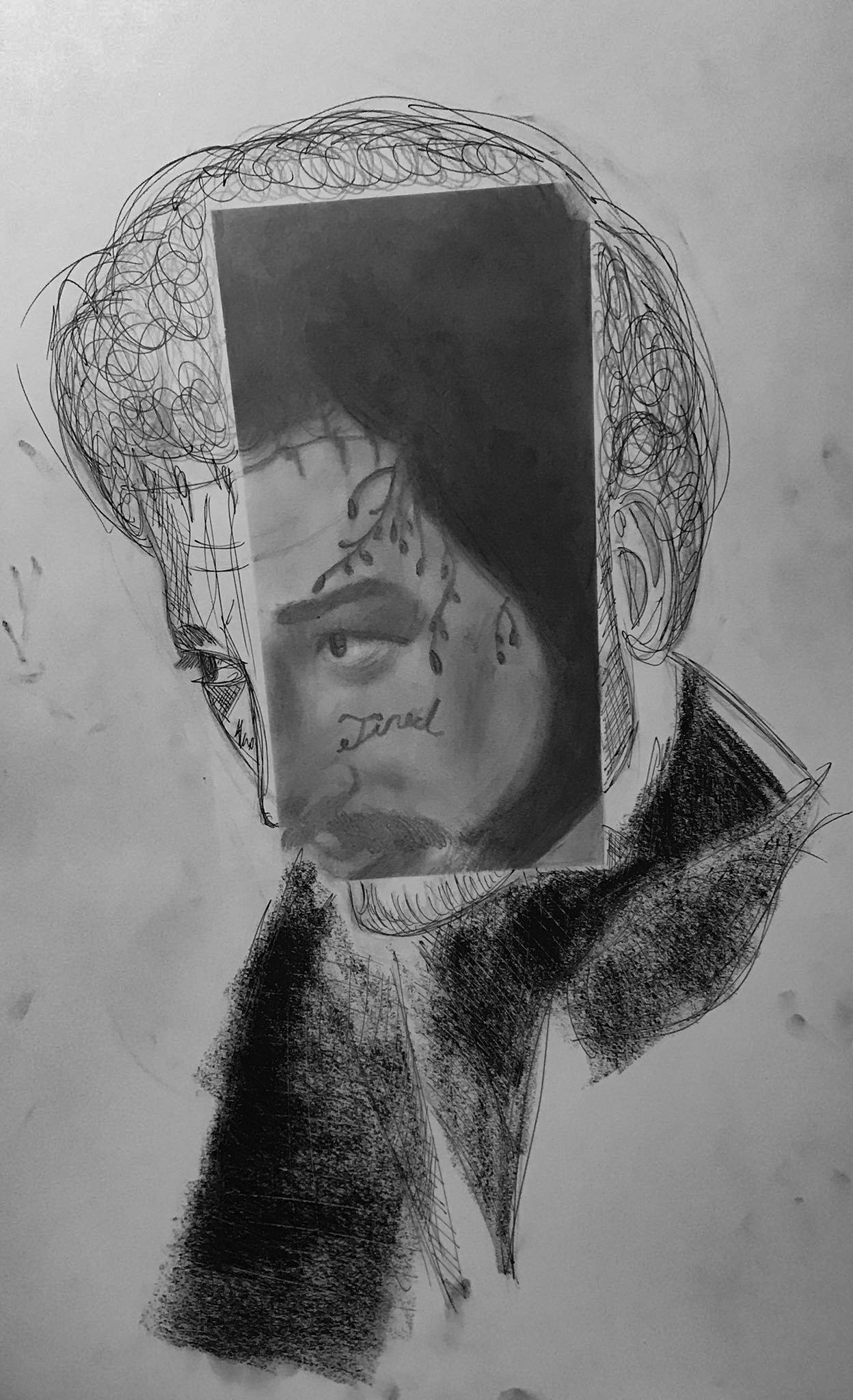 My final project for my Basic Drawing II class. One rectangular area of the portrait was fully detailed and rendered, while the other sections of the portrait were left as progressive sketches and impressions to show creative process and step-by-step progress, as the rubric for the project requested.